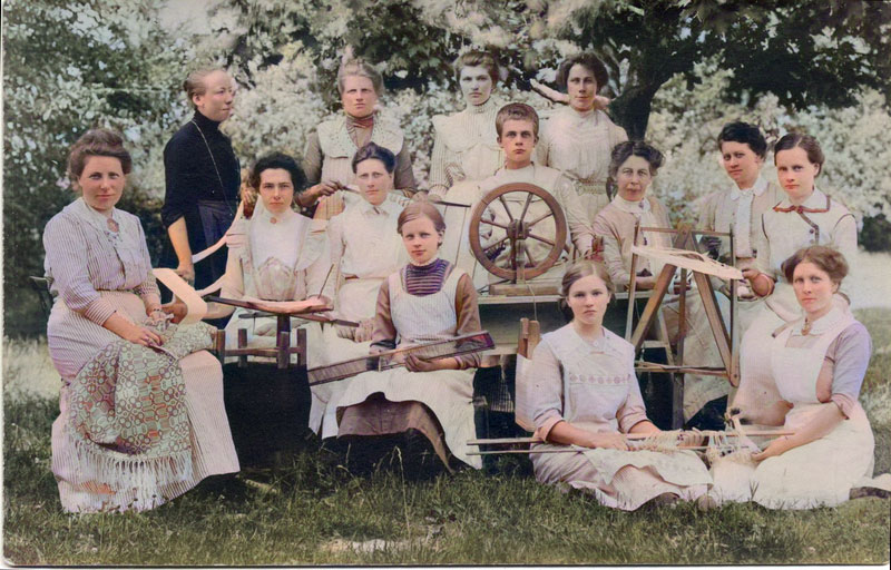 Elin (t.v) som lärarinna i en kurs i vävning i Krokstad kring år 1908.