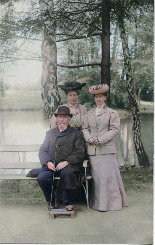 Elin (t.v) med kusinen Andrea och farbror Gustaf på en resa till kurorten Bad Nauheim i Tyskland 1905.