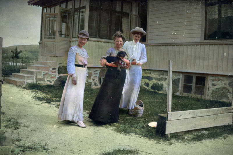 Elin Sundberg (t.h) framför Villa Solfrid första sommaren 1917.